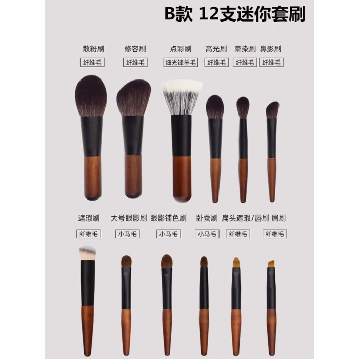 煜洛12支迷你化妝刷套裝隨身旅行可攜式動物毛mini套刷眼影刷散粉刷