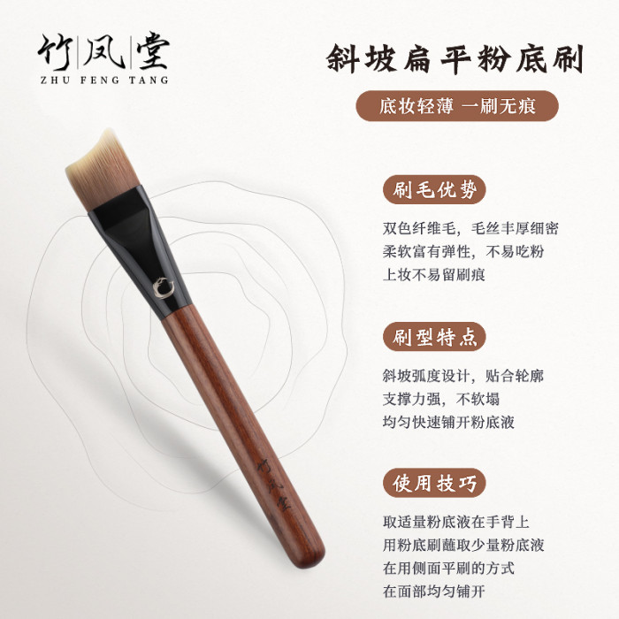 竹鳳堂化妝刷雛鳳F822斜坡刀鋒粉底刷扁頭面膜刷無痕不吃粉竹風堂