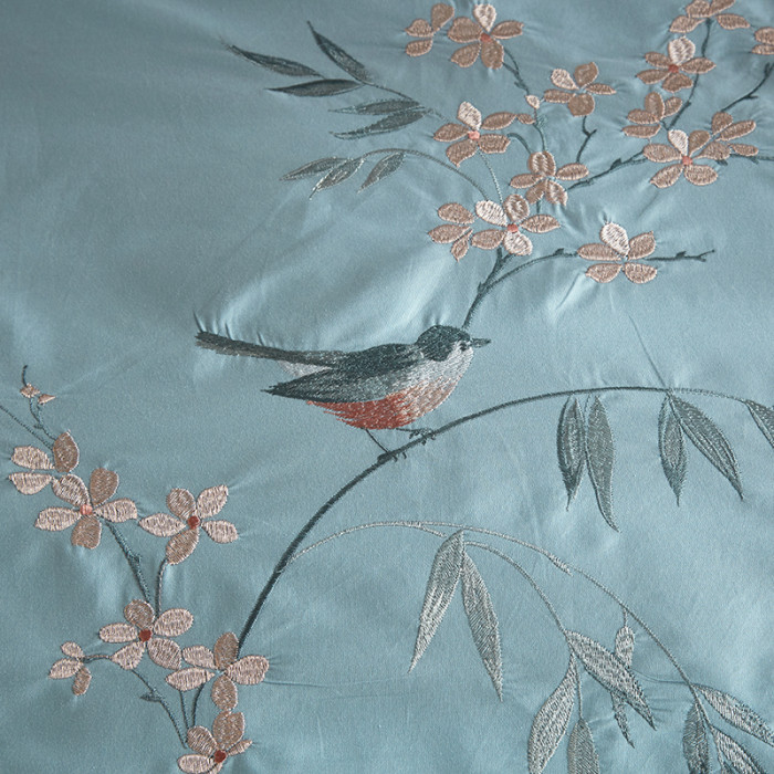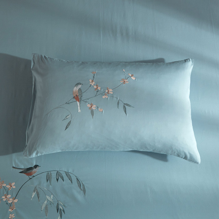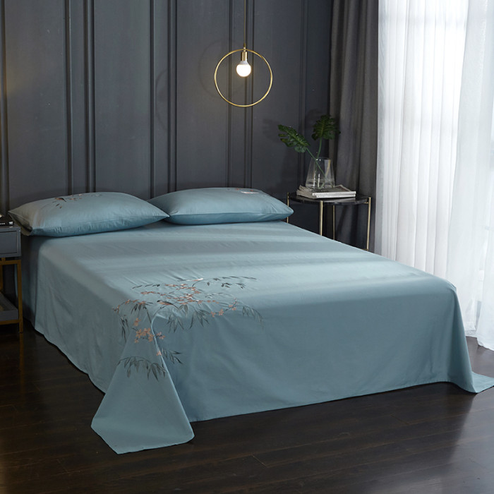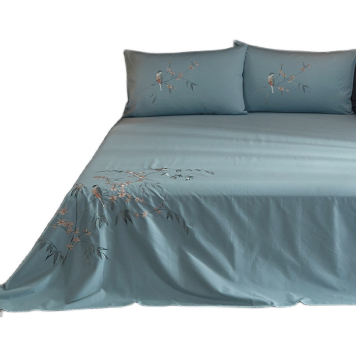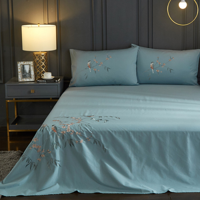 nineer出口新歐式全棉綉花床單三件套霧藍色1.8米2米被單床上用品