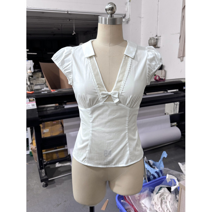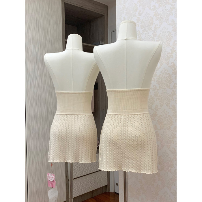 龍心 休息日的offer 真絲v領蝴蝶結修身襯衫&麻花短裙