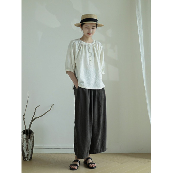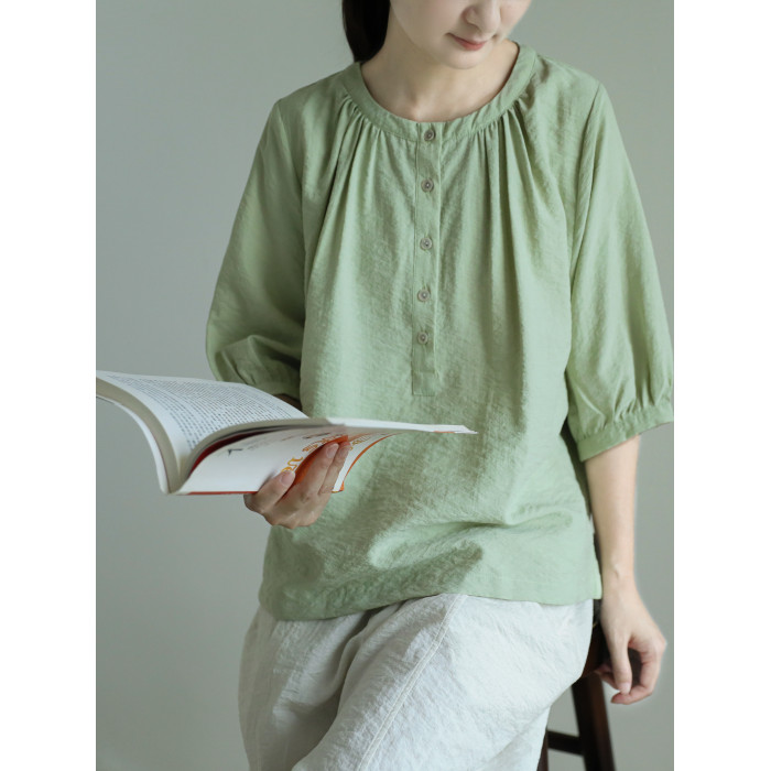 塵染減齡圓領襯衫女2025夏季新款桑蠶絲薄款小衫真絲乾絲寬松上衣