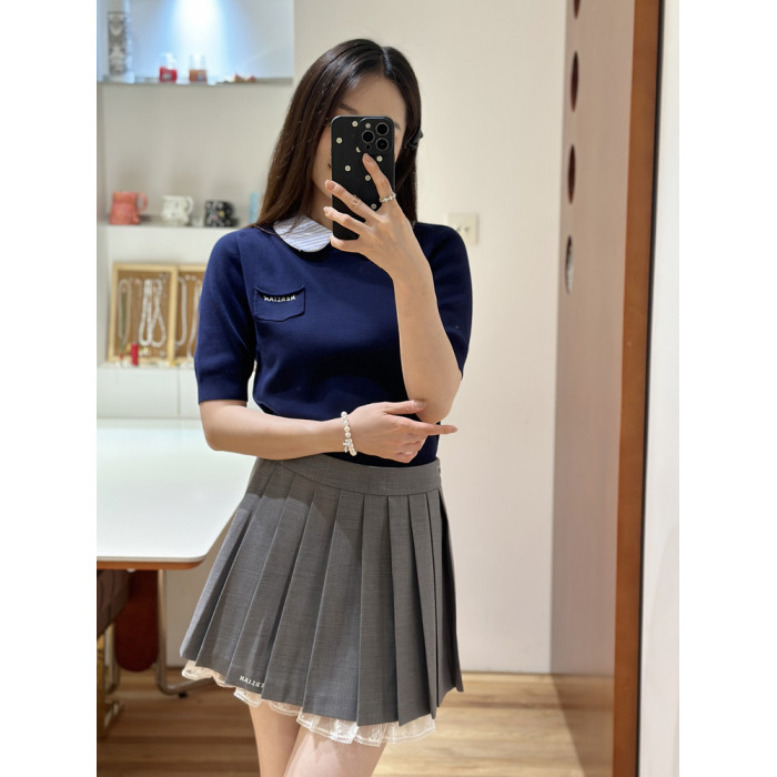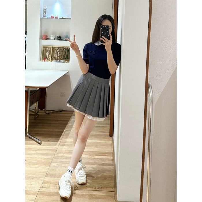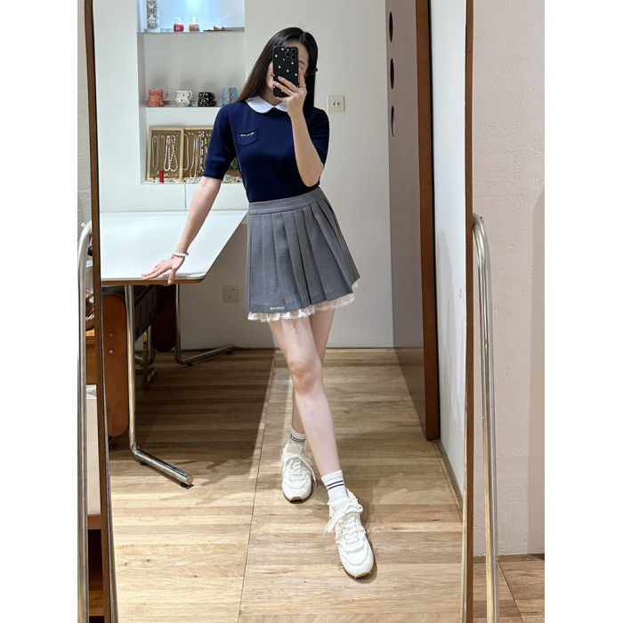 親媽~YII BAOR2025秋季女士百褶短裙蕾絲拼接刺綉半裙JK裙