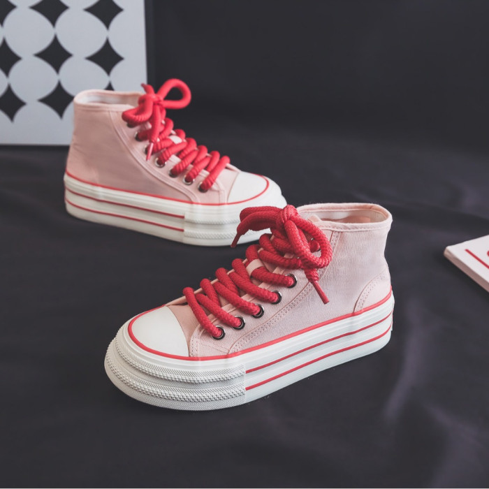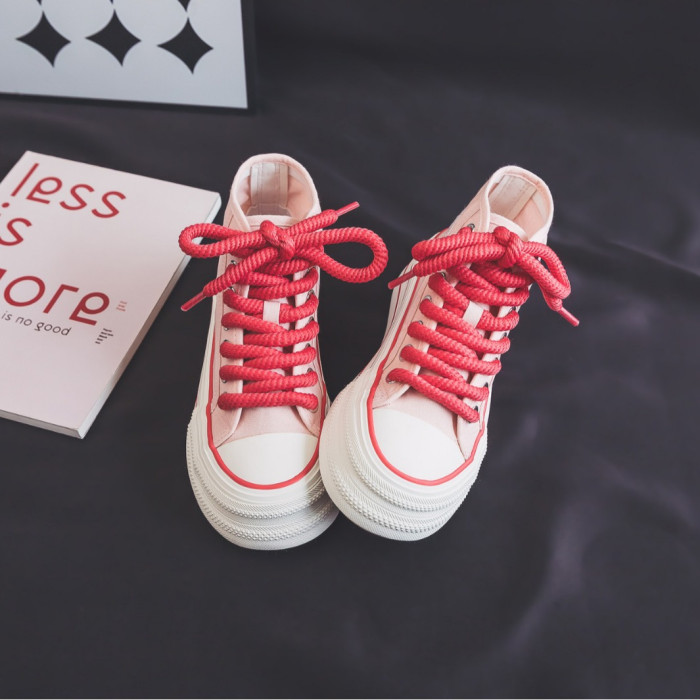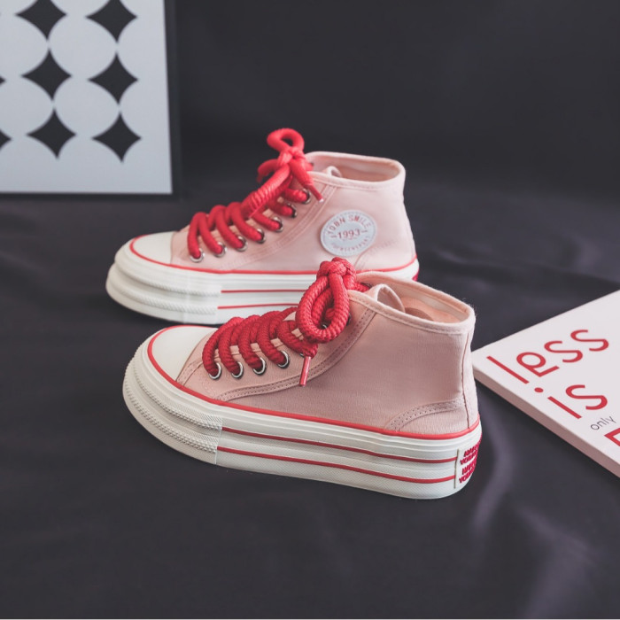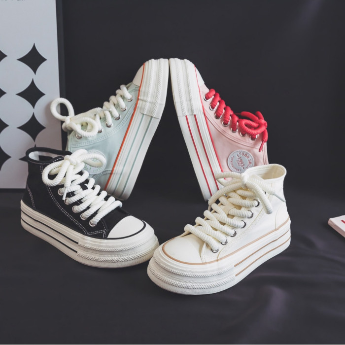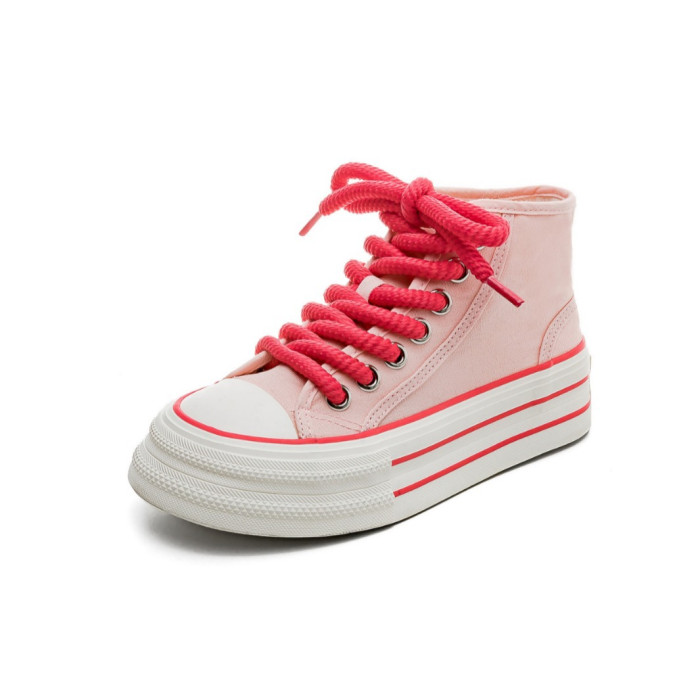 2025年春秋新款學生休閒百搭高幫厚底增高帆布鞋女H1292