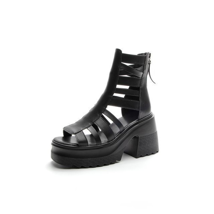 粗高跟騎士靴新款松糕厚底洞洞孔涼靴增高馬丁靴子女真皮網孔靴