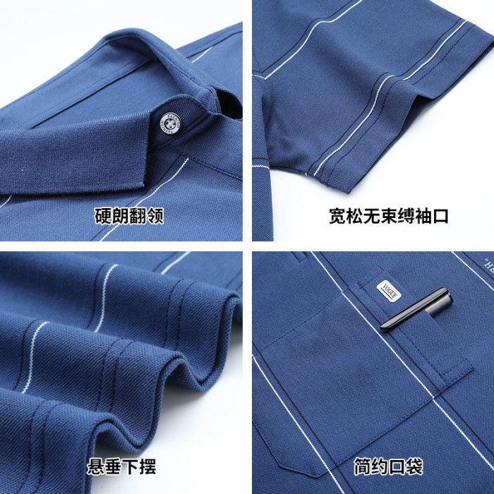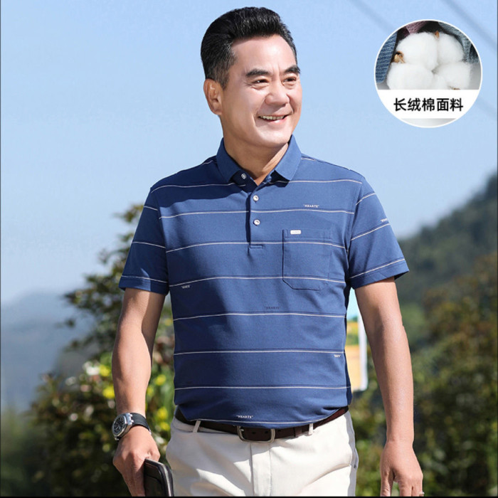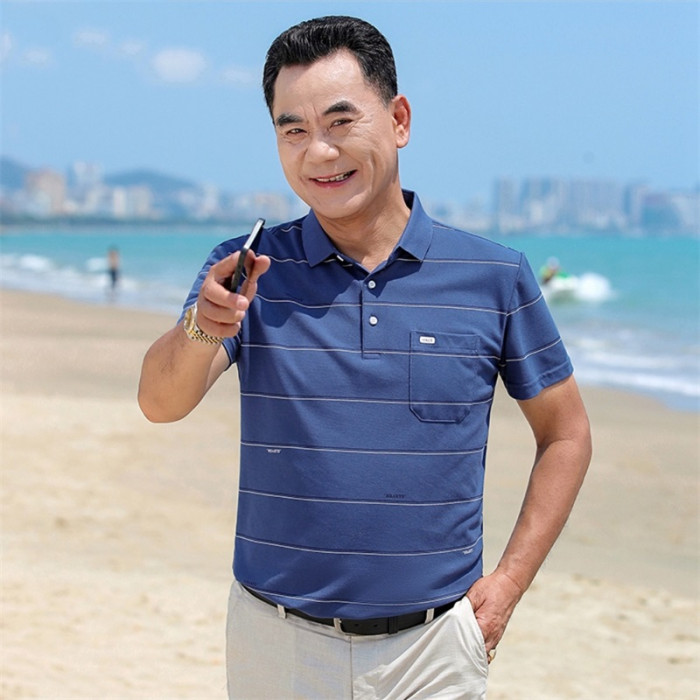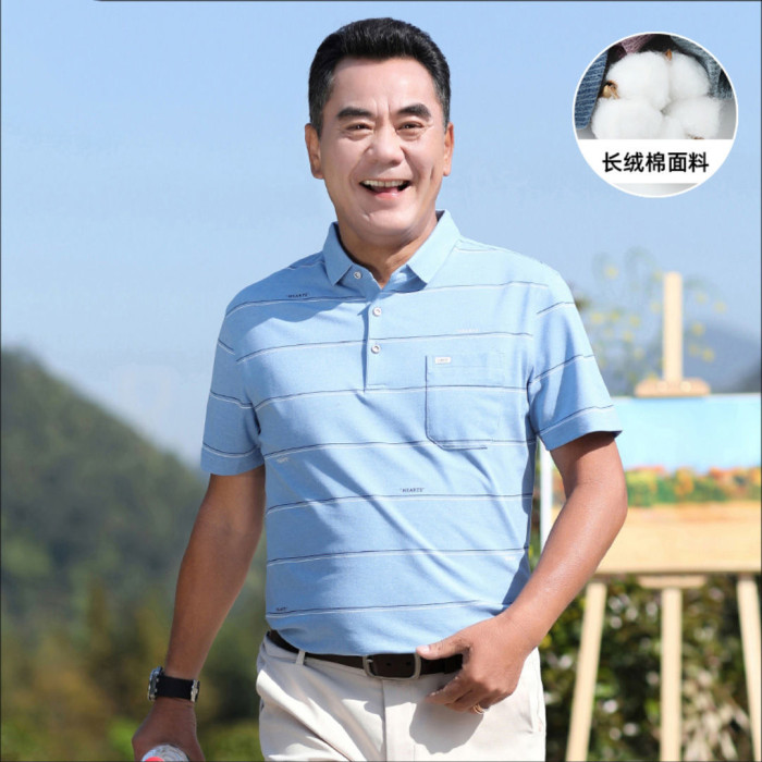 中年爸爸夏裝短袖男t恤薄款40-50嵗中老年人男士絲光棉polo衫上衣