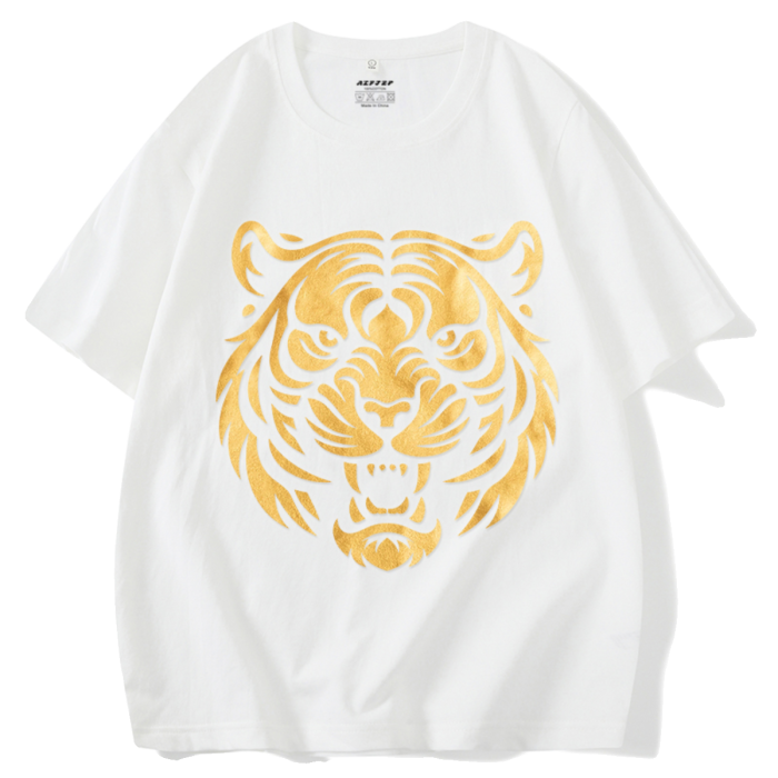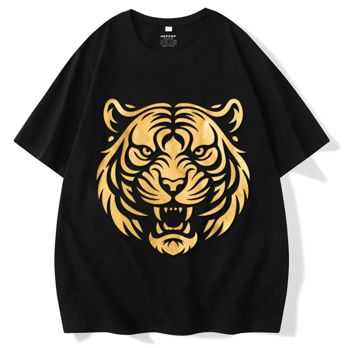 2025年新款霸氣日系潮牌老虎頭短袖高檔燙金流行印花時尚潮男T恤