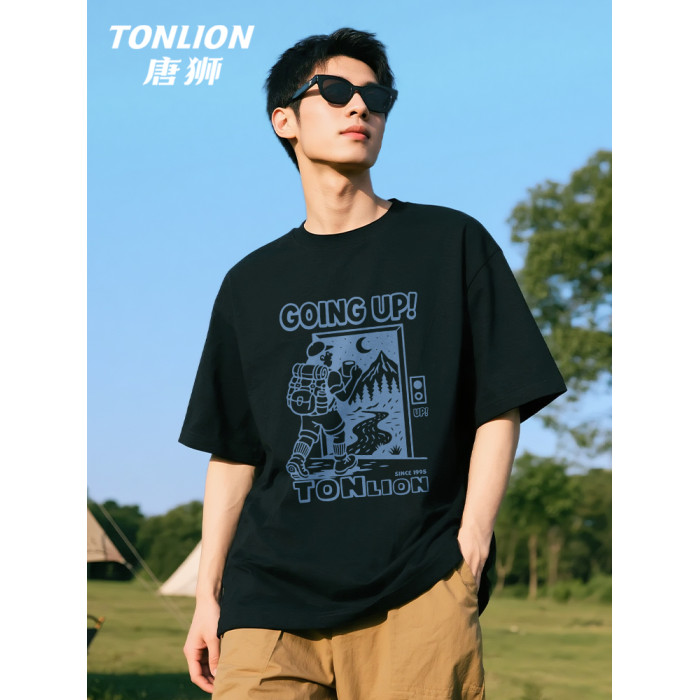 唐獅短袖男t恤2025新款夏季美式寬松五分袖設計感重磅純棉體恤衫