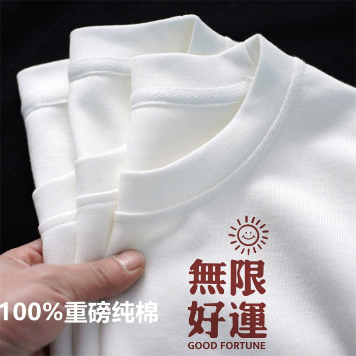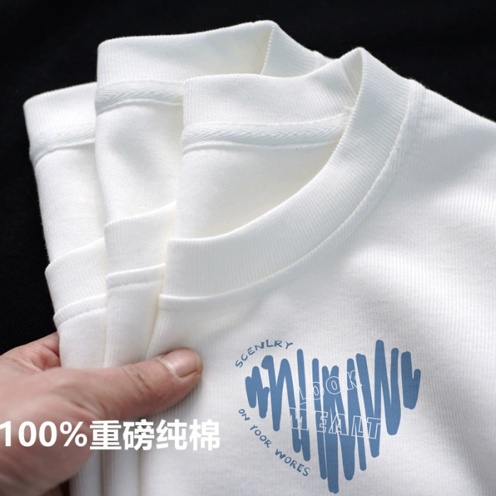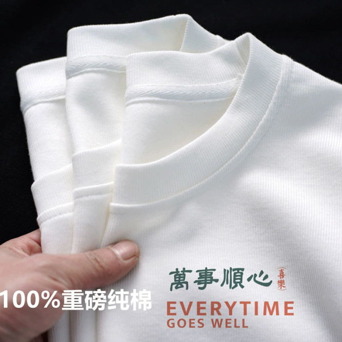 100%純棉短袖男T恤夏季新款國潮半袖舒適寬松百搭打底體恤男上衣