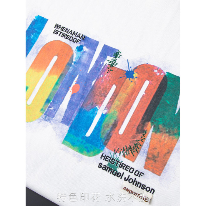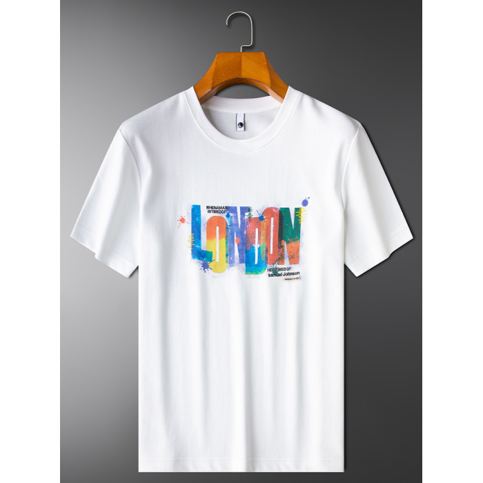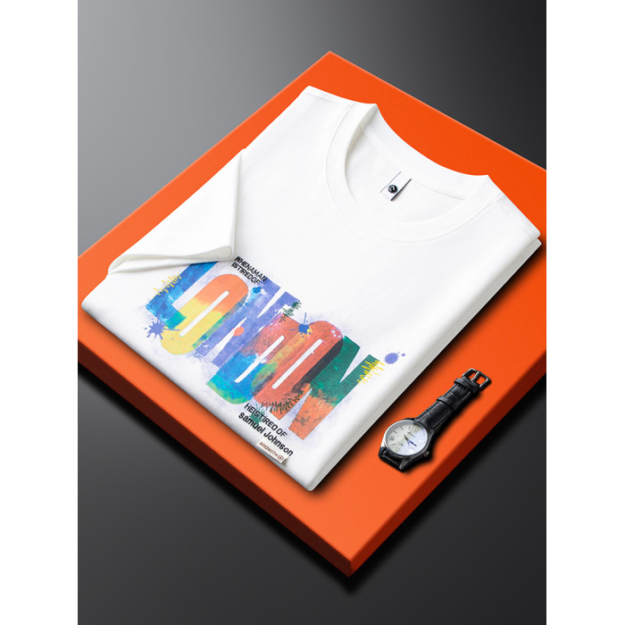 頂級感彩色字母印花加厚短袖男t恤2025新款秋季白色休閒圓領上衣