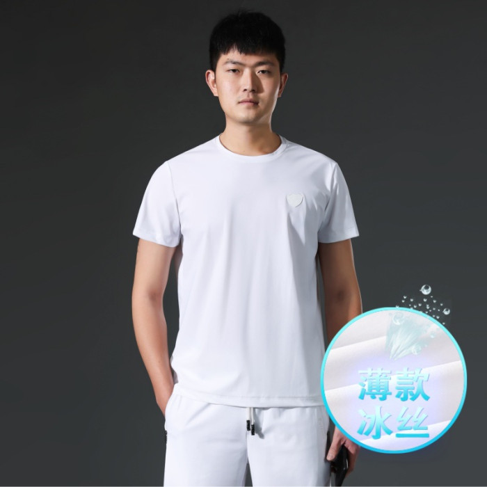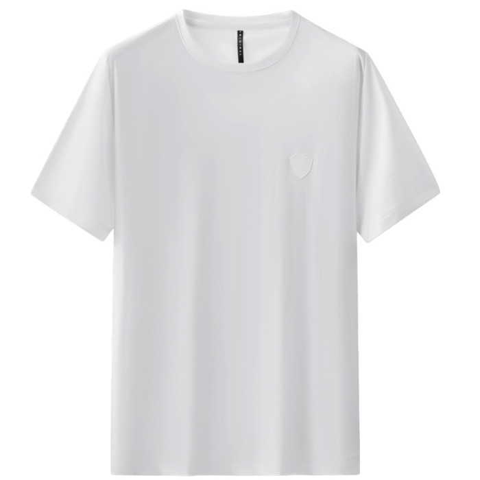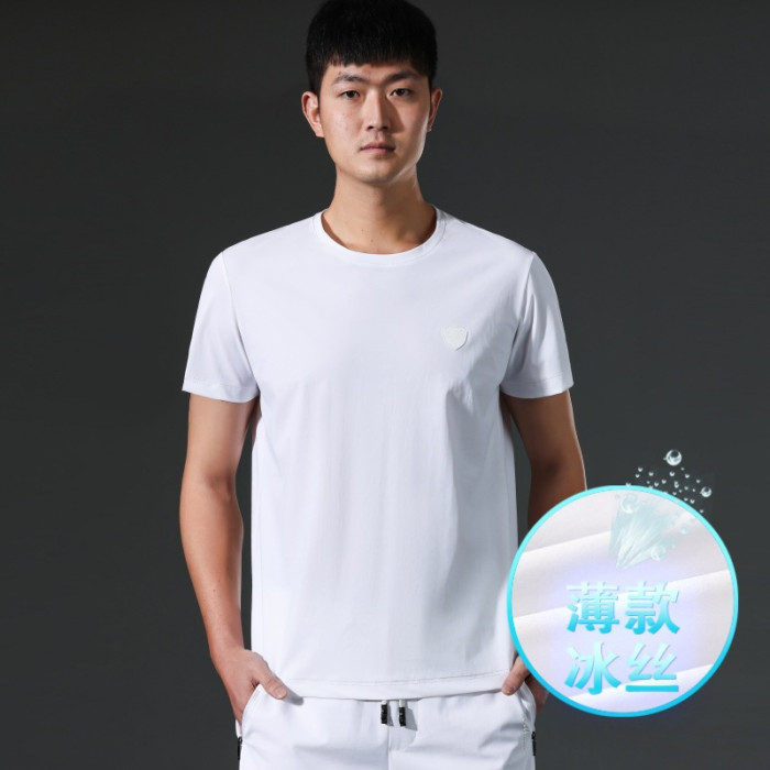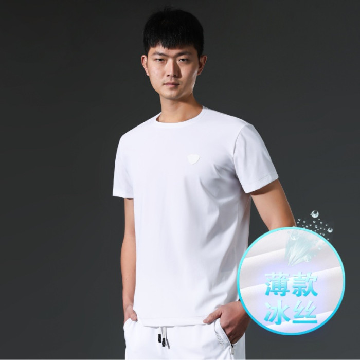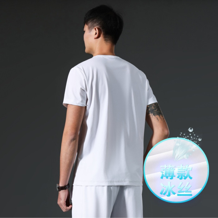 高級涼感短袖男t恤夏季圓領白色男士夏天超薄款冰絲半袖高彈體恤
