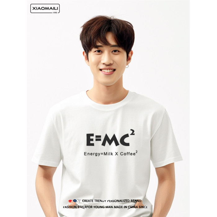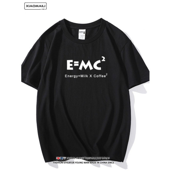 咖啡創意純棉男T恤惡搞E=MC²質能方程印花短袖簡約百搭寬松上衣