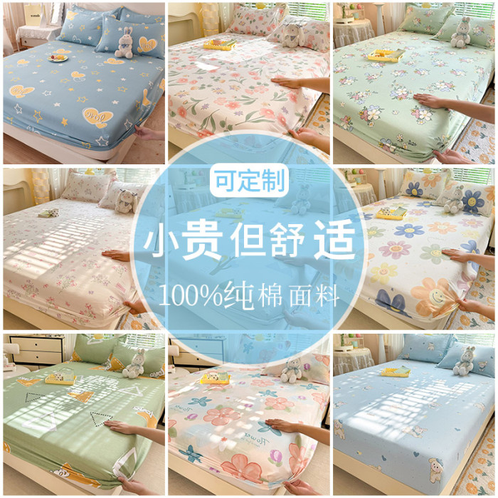 品牌官方旗艦店100全棉床笠罩墊套單件二合一純1米35南通家紡新款