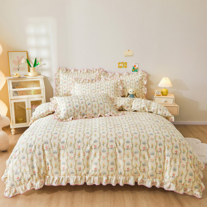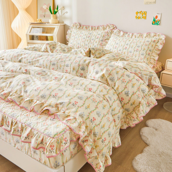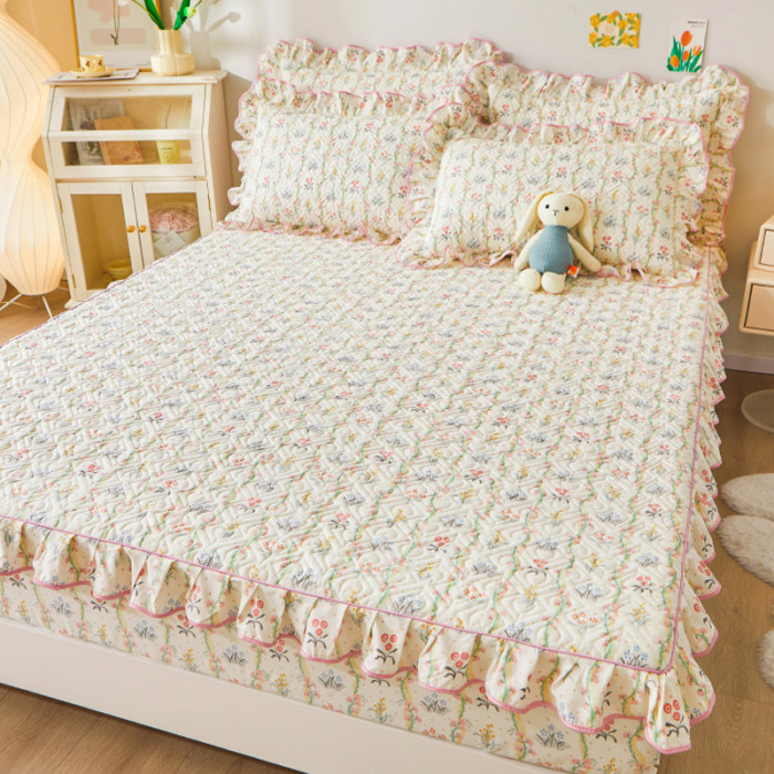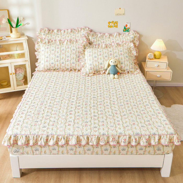 韓版ins花邊床笠單件100全棉床墊套純棉防滑不跑床夾棉床單四件套