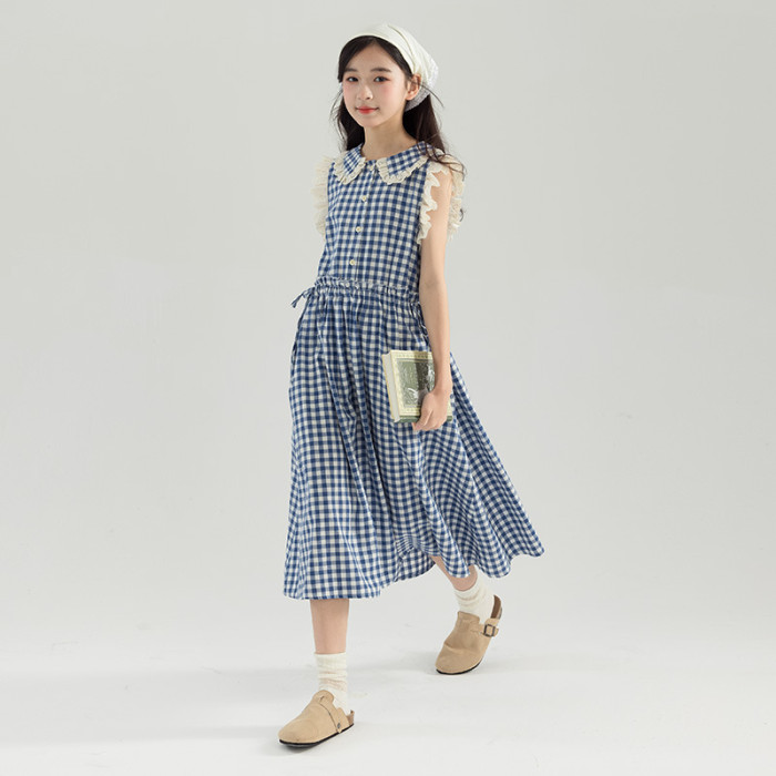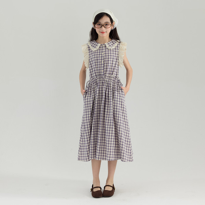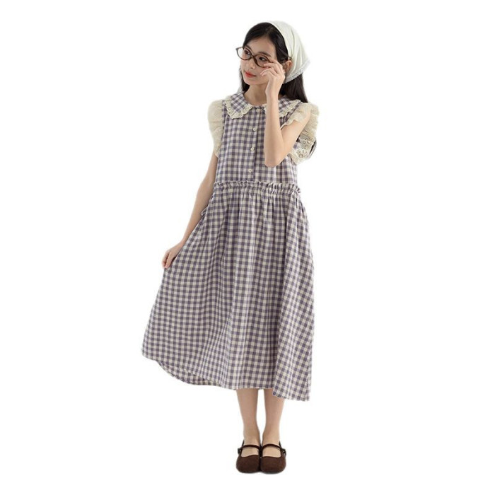精選梭織全棉洗水棉格子布,手感柔軟親膚,棉質吸汗透氣,田園小清新甜美氣質,中長款寬松版型,小翻領無袖設計,用的都是好料純棉花邊,立體刺綉,有型突顯質感,剪胸開釦,腰間有做抽繩,兩側可以系蝴蝶結,想穿寬松版型或是收腰顯身材風格都由你自己決定,裙子可以穿出兩種風格,胖瘦都合適,不挑膚色,不挑身材