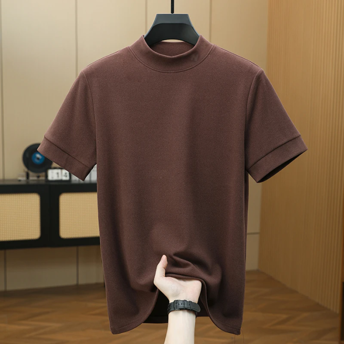 倉石一樹半高領保暖短袖打底衫德絨純色內搭雙面絨上衣秋冬男T恤