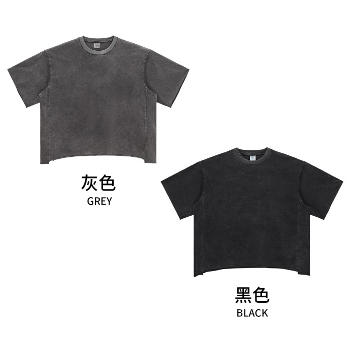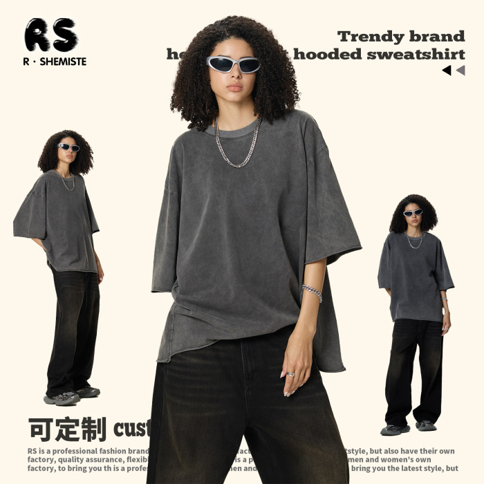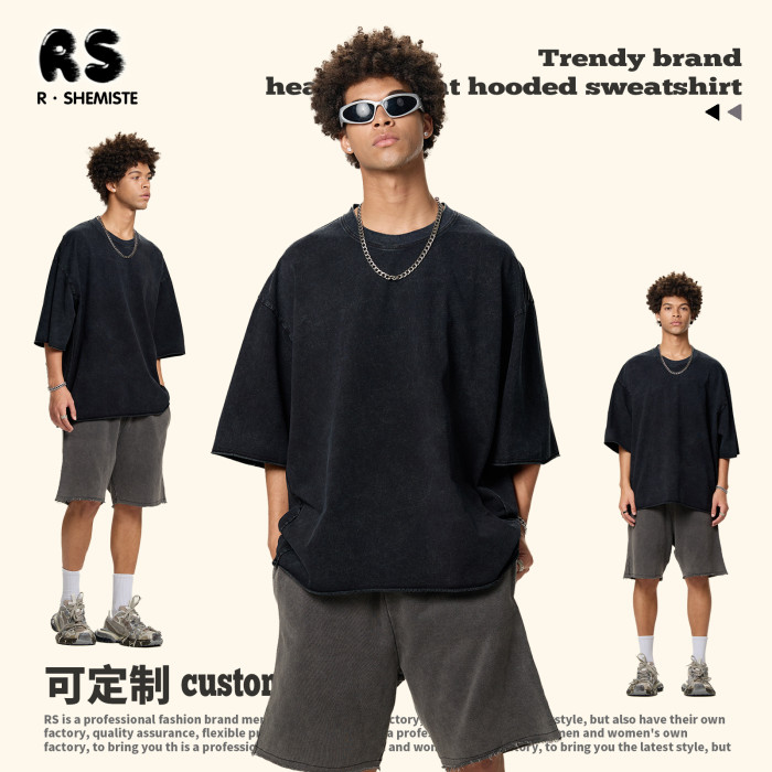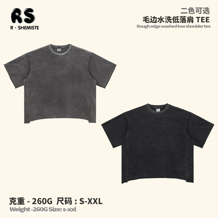 RS男裝 |Boxy版型蠟洗炒雪花毛邊短袖260G純棉短款設計t恤男T恤
