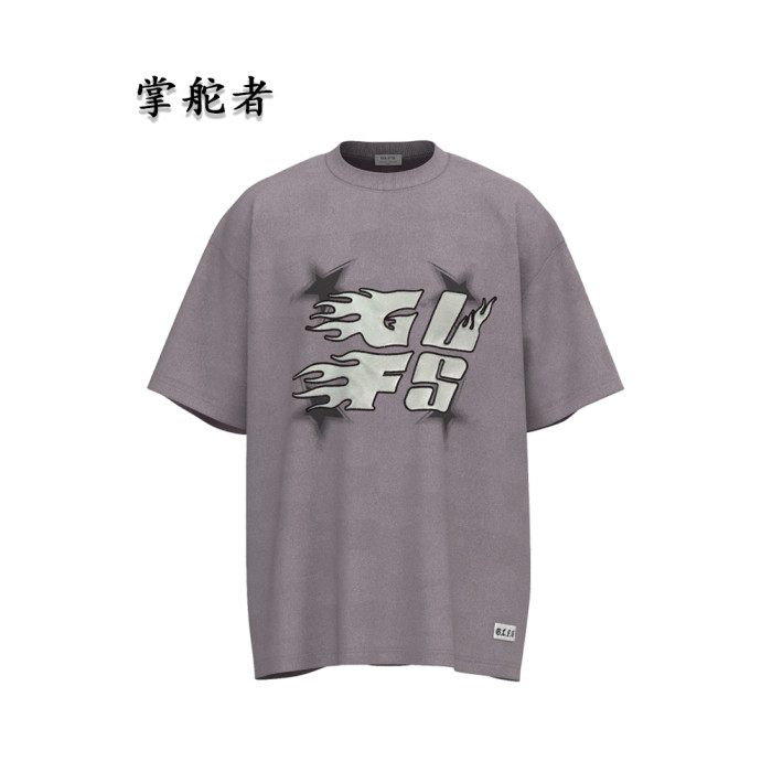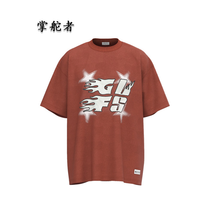 新款重磅美式復古麂皮絨字母刺綉短袖男T恤潮牌寬松情侶上衣女ins