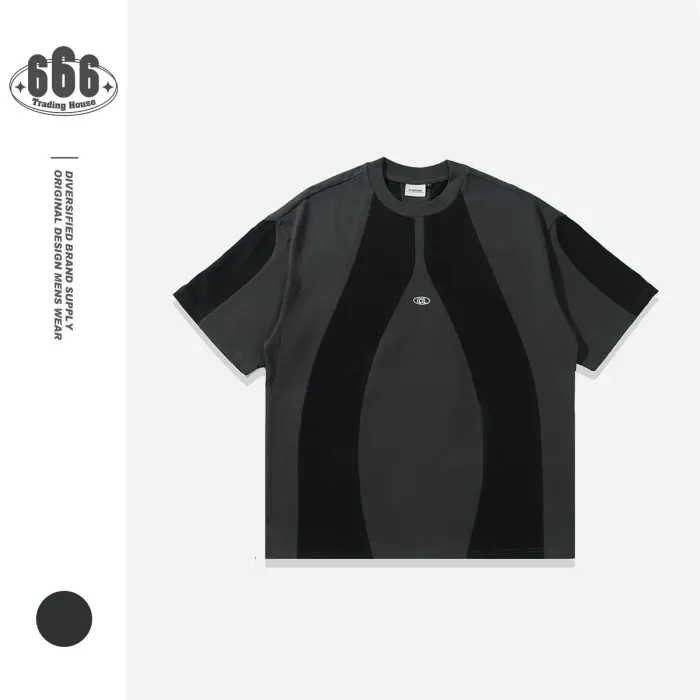 ATBORDER小衆設計感拼接剪裁美式潮流圓領寬松短袖夏季男T恤N1287