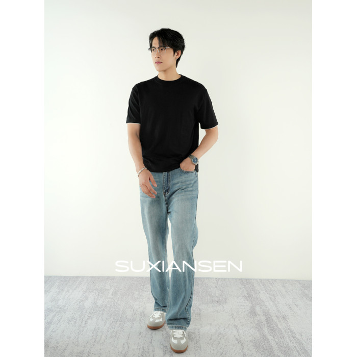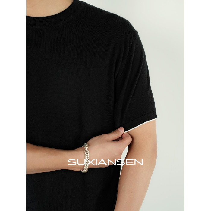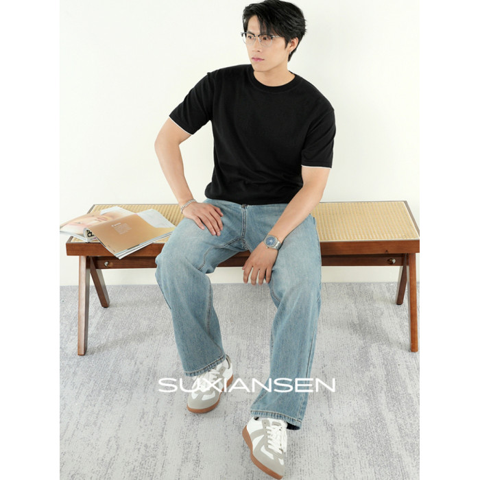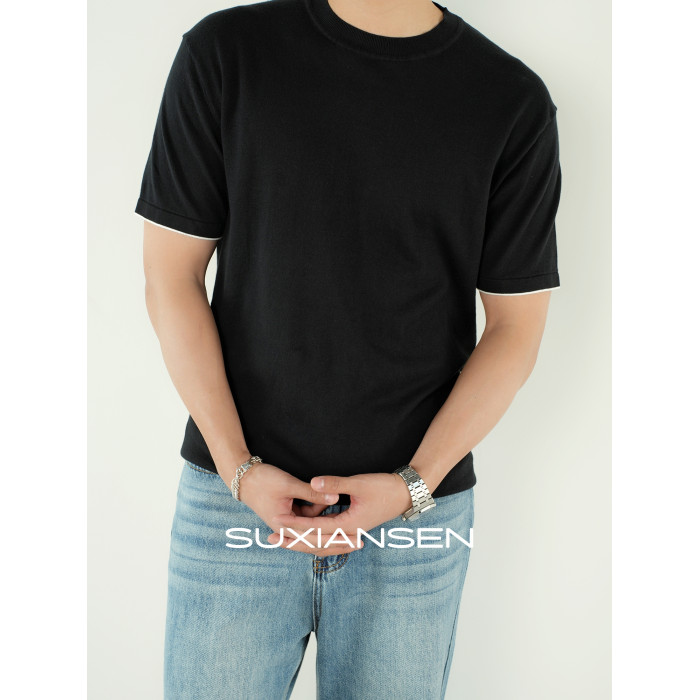 【大頭叔叔】輕奢商務休閒毛織短袖夏季極簡精梳棉針織男T恤6902