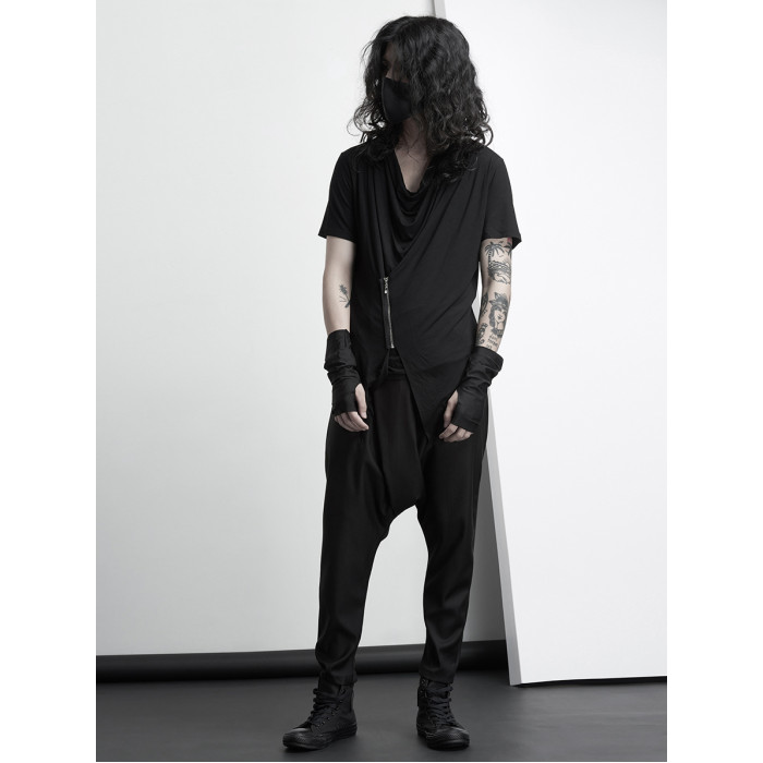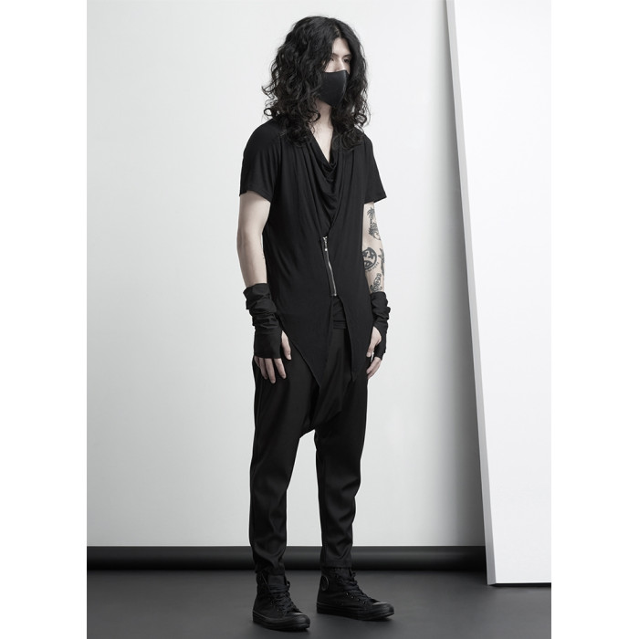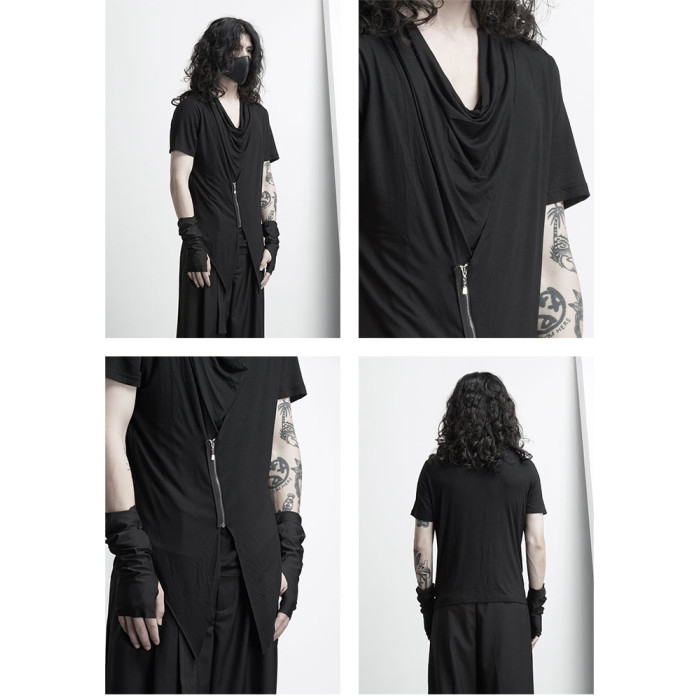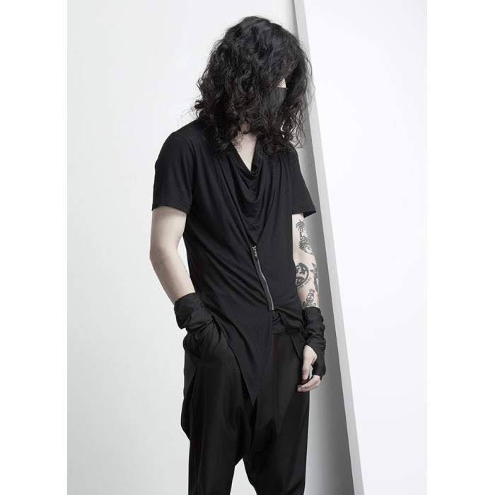 原創時尚潮流男t恤夏季柔軟短袖山本風個性修身薄款親膚半袖黑色
