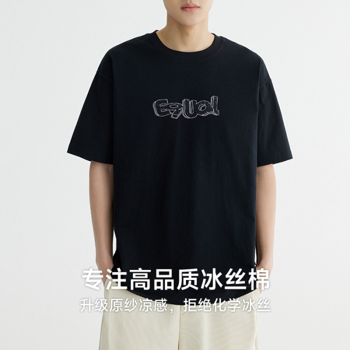速乾冰絲棉 圓領印花涼感男t恤短袖夏季新款潮透氣半袖體恤衫