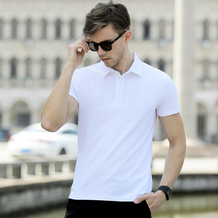 短袖男T恤翻領絲光棉歐洲站商務休閒POLO衫男士體恤修身新