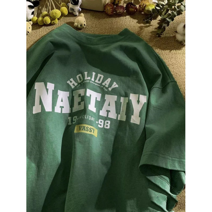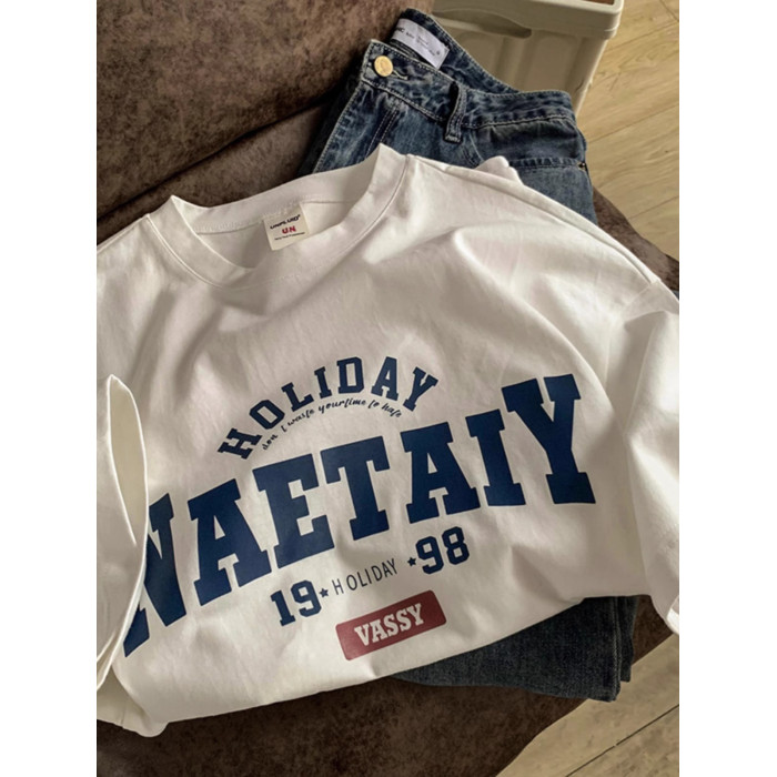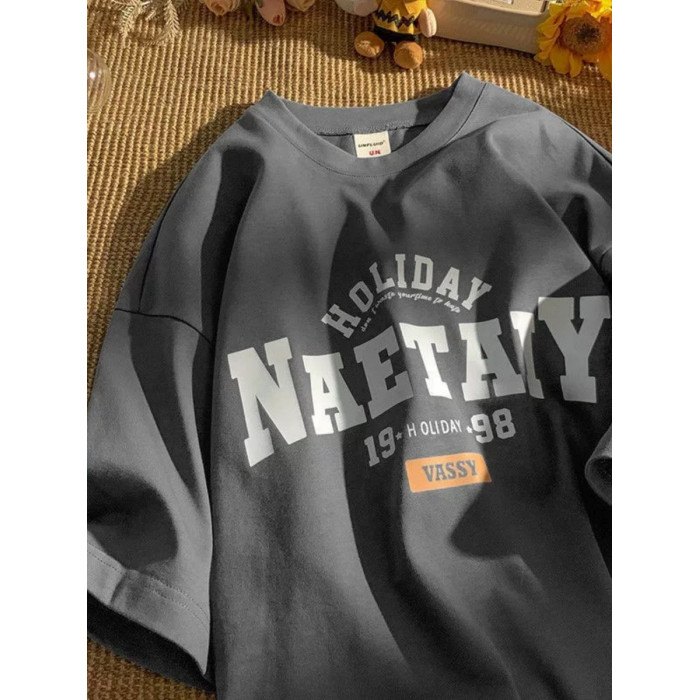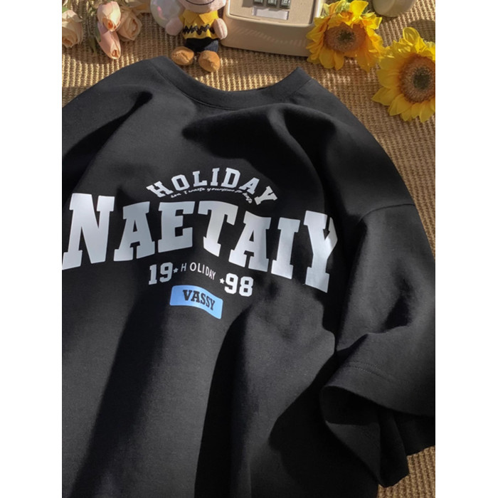 2024夏春純棉美式短袖男款黑色復古衣服潮牌上衣寬松潮流潮男t恤