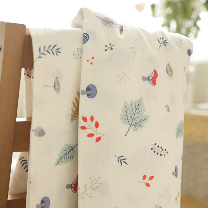 A類母嬰級純棉透氣雙層紗秋葉蘑菇床單被套花朵紗布床笠兒童1.5床