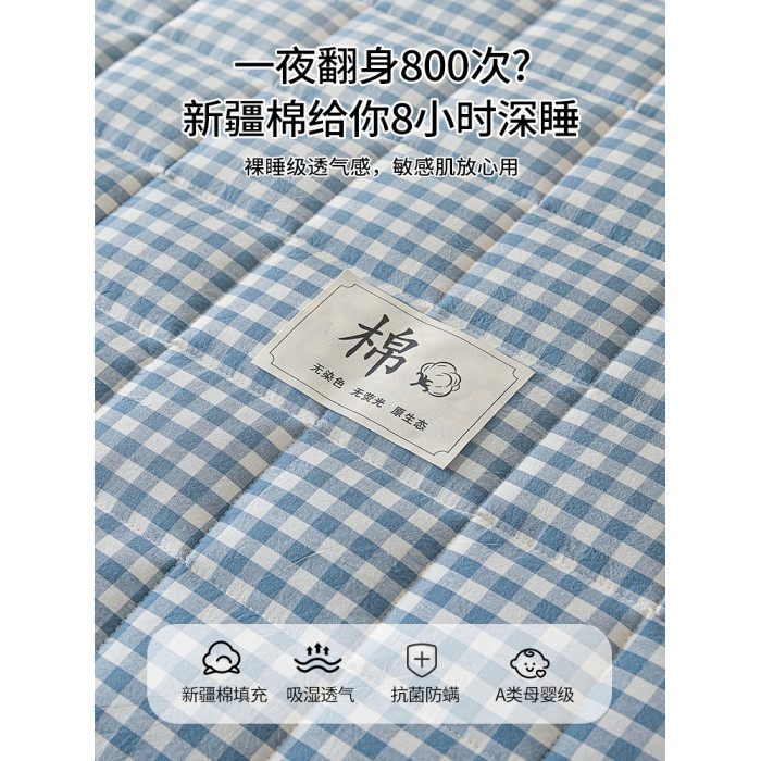棉格-藍小格【已質檢:100%新疆棉花填充】