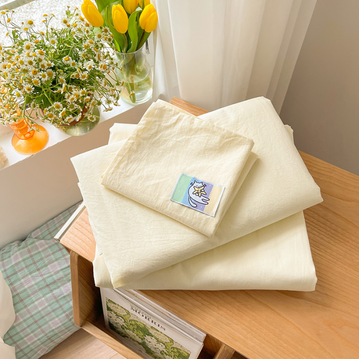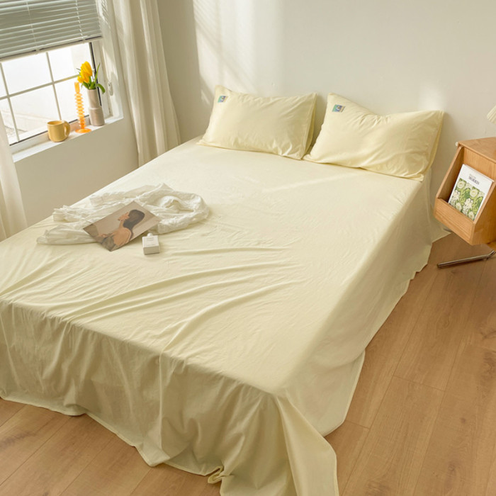 馬卡龍奶油色丨水洗棉單件床單床笠 純棉全棉100%單人雙人床墊套
