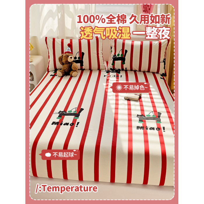 純棉防滑床笠單件100全棉床罩加厚床套紅色新年單人厚床單2三件套
