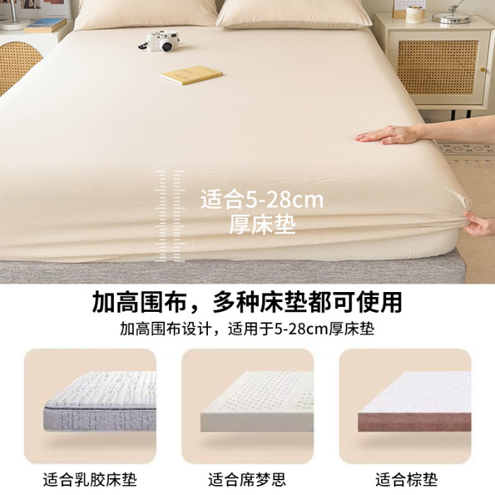 A類純棉水洗棉床笠單件2025新款四季通用全棉床罩全包枕套三件套