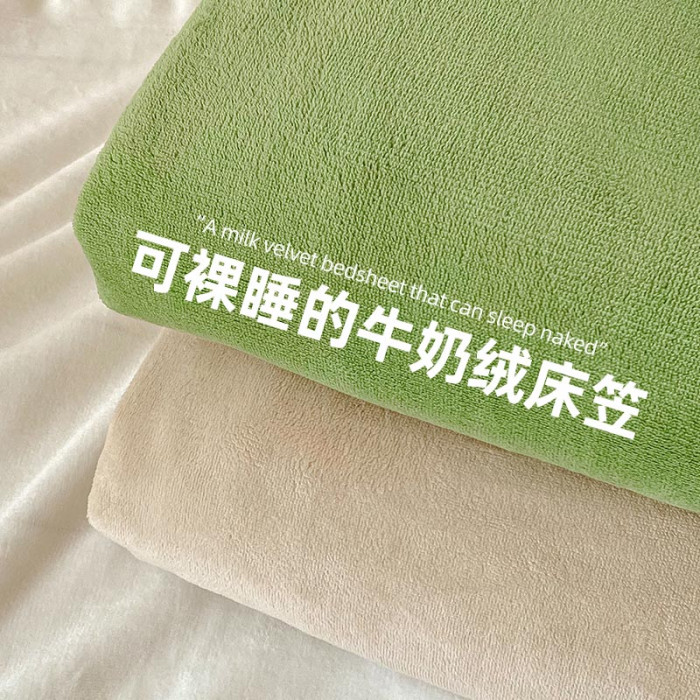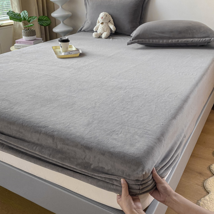 秋冬季加厚牛奶絨床笠單件純色珊瑚絨床墊套罩防滑加絨床單三件套