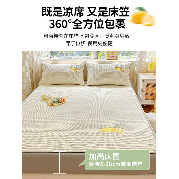 涼蓆2025新款三件套冰絲夏季單件全包床罩床套罩可機洗水洗床笠款