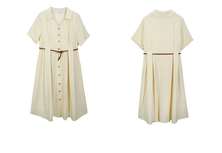【法式氣質收腰顯瘦剪刀領連衣裙】纖莉秀大碼女裝胖mm2025夏新款