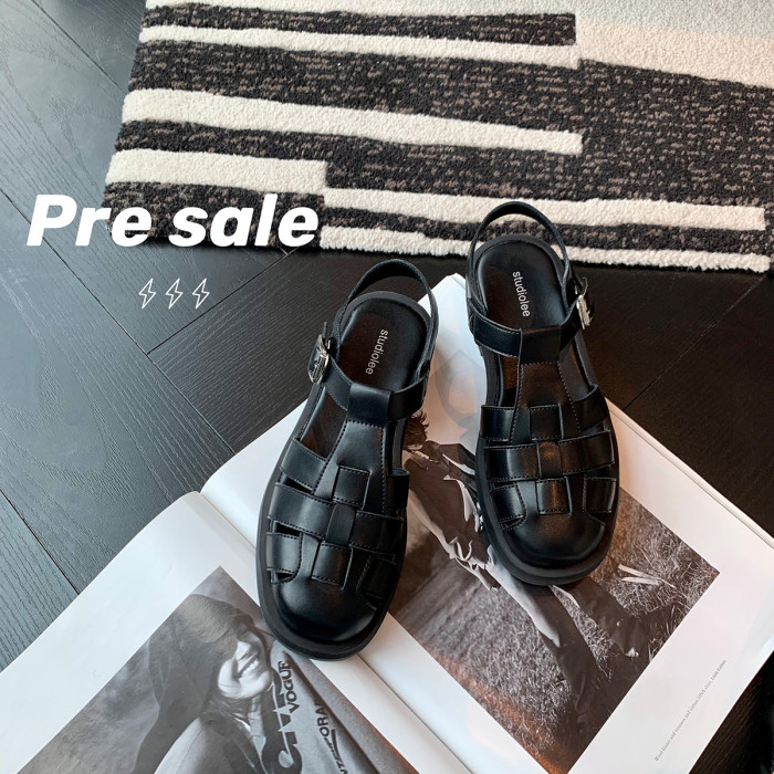 2023春夏新款軟底包頭粗跟厚底復古時尚羅馬編織涼鞋女