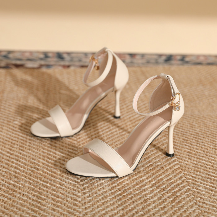 2024夏季新款一字釦高跟涼鞋大碼加肥加寬淺口舒適女鞋黑色簡約