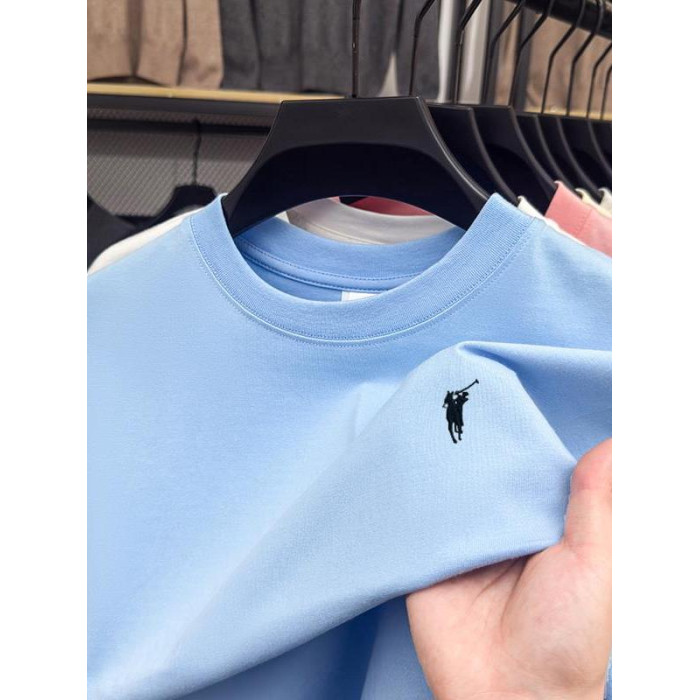 MAROLIO~純棉刺綉!保羅短袖男t恤2025新款夏季潮圓領小馬標體恤