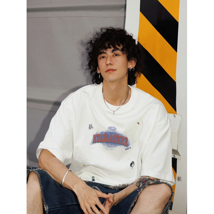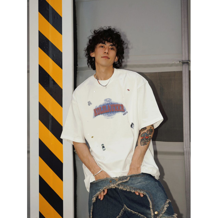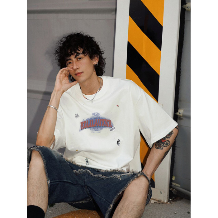 BF國潮牌重磅短袖男t恤美式oversize高街純棉大碼寬松半袖體恤衫