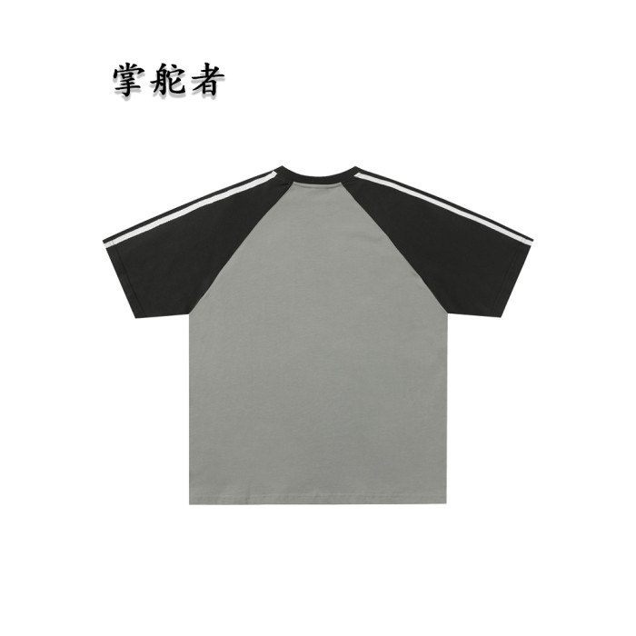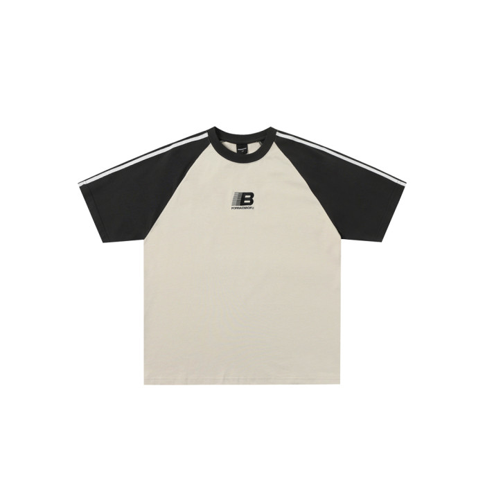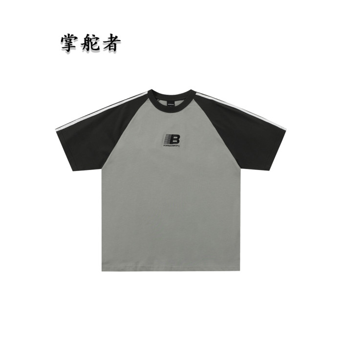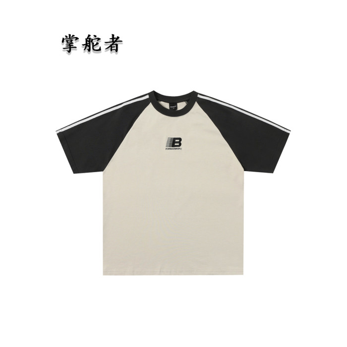 美式原創拼色字母刺綉短袖男t恤潮牌百搭寬松純棉情侶夏季上衣女