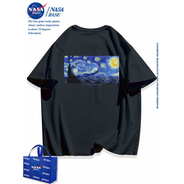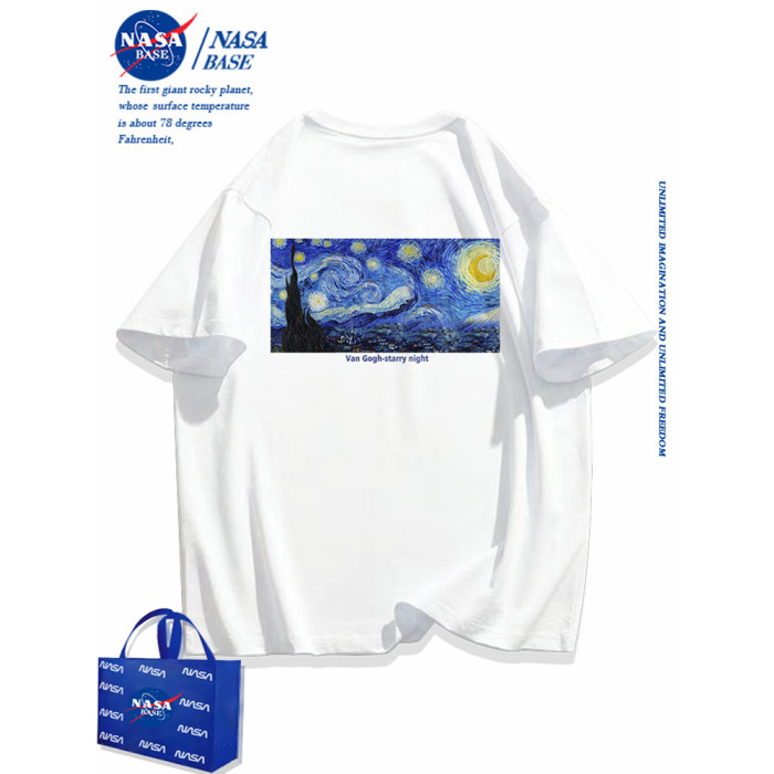 NASA聯名梵高星空短袖男t恤2025新款潮牌寬松純棉白色體恤學生女