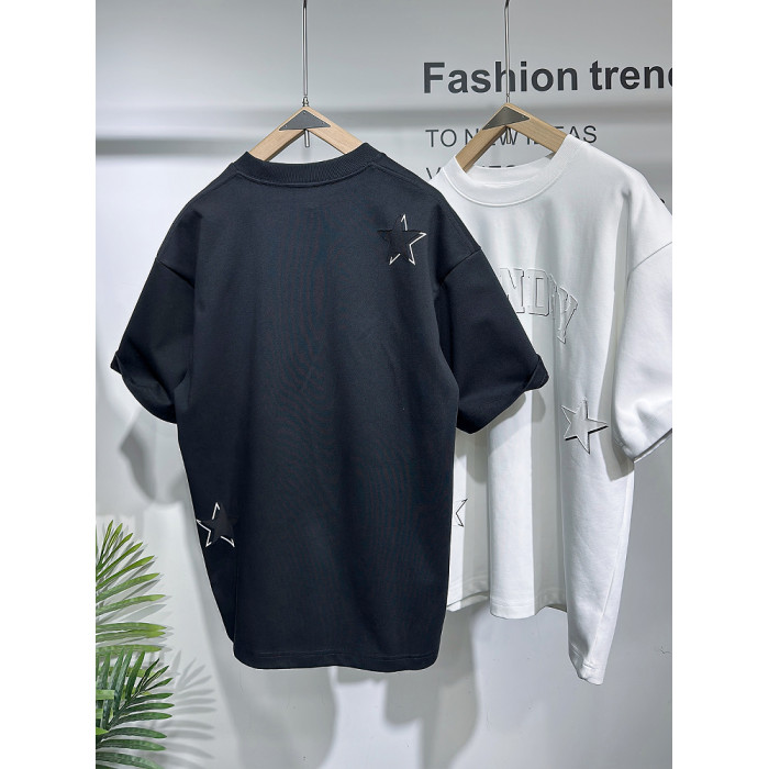 日系純棉寬松短袖情侶高級潮流休閒百搭夏季高克重寬松男T恤短袖