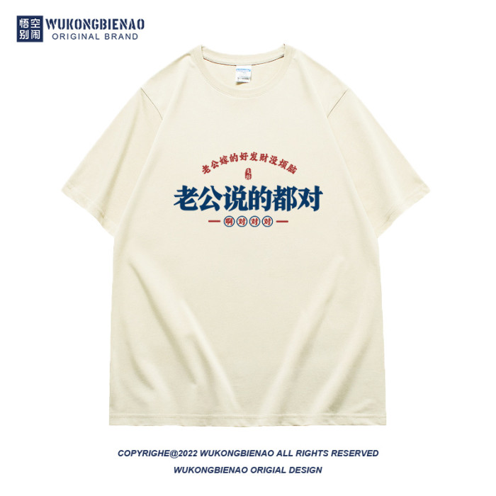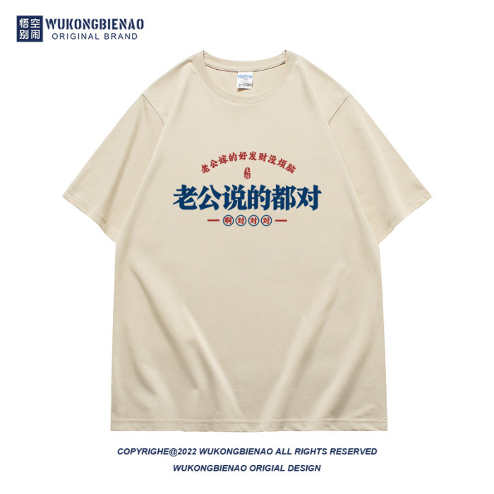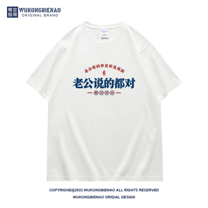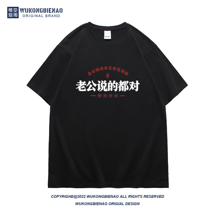 老公說的都對國潮趣味文字夏季新款男t恤純棉寬松潮流圓領短袖t恤