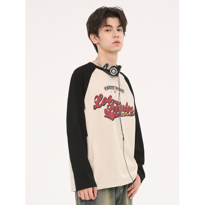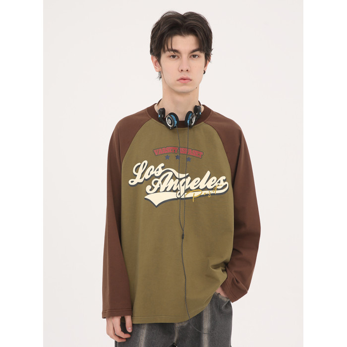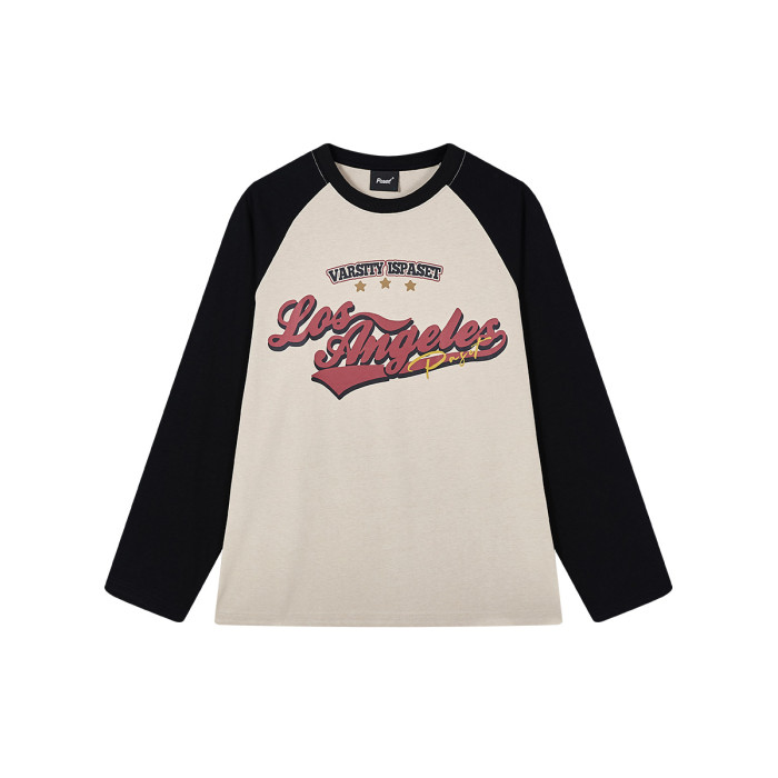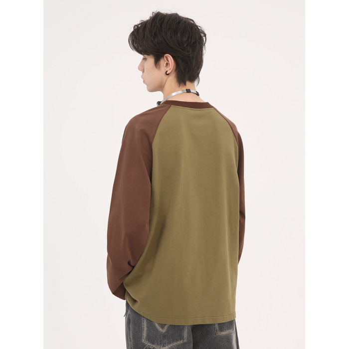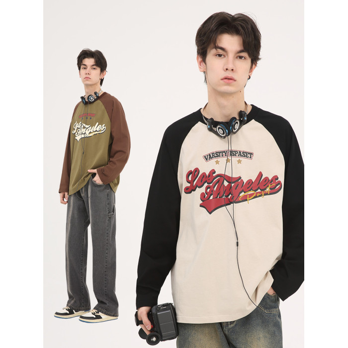 PASET潮牌潮流經典解搆拼色長袖男T恤插肩圓領寬松休閒情侶款上衣