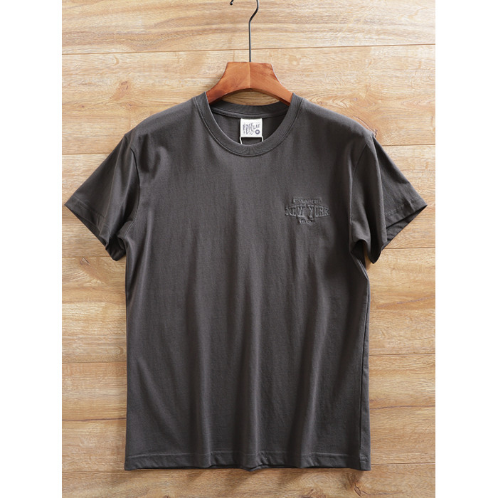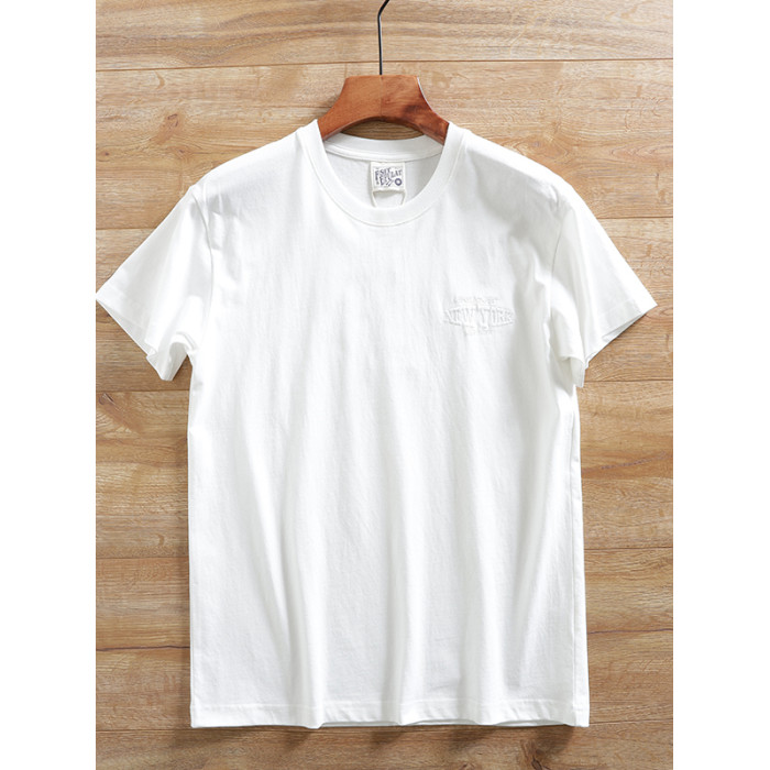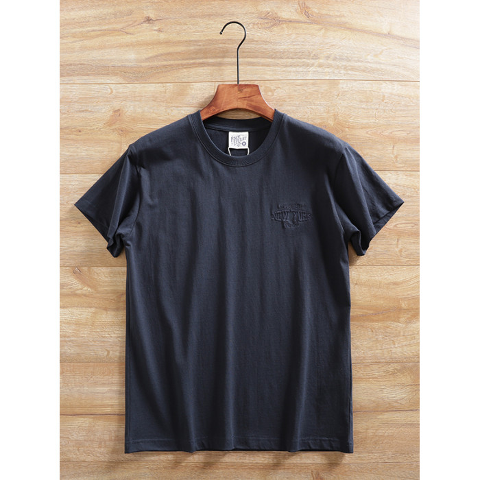 100%全棉短袖男t恤2025新款親膚透氣時尚百搭圓領休閒刺綉半袖衫