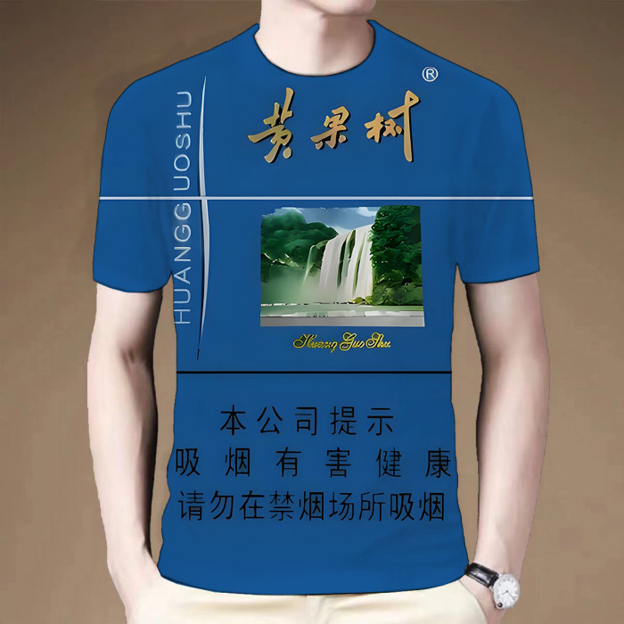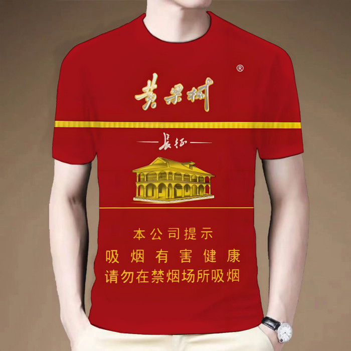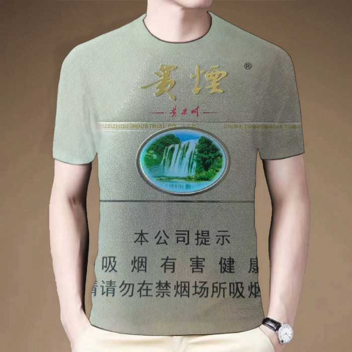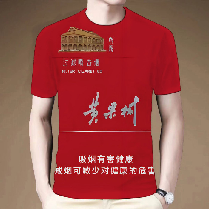 白色黃果樹菸盒夏季男士短袖 搞怪3D貴菸印花爆款時尚百搭男t恤