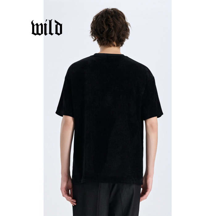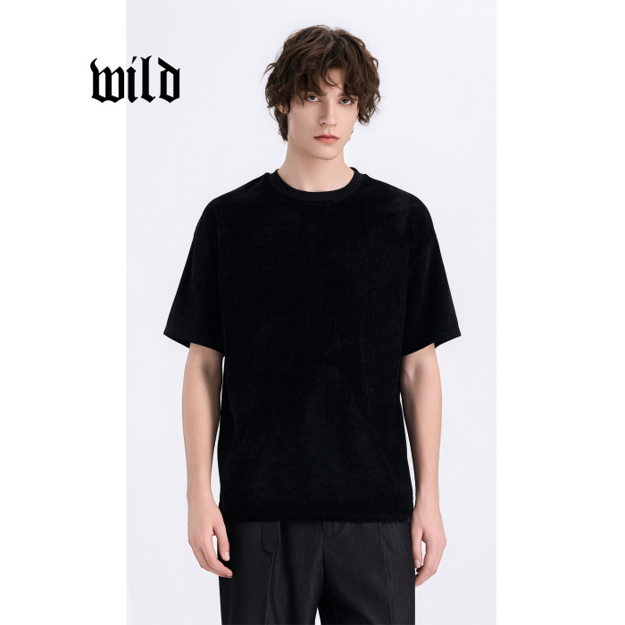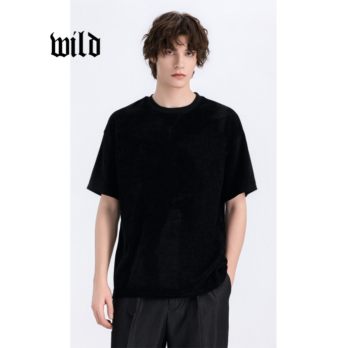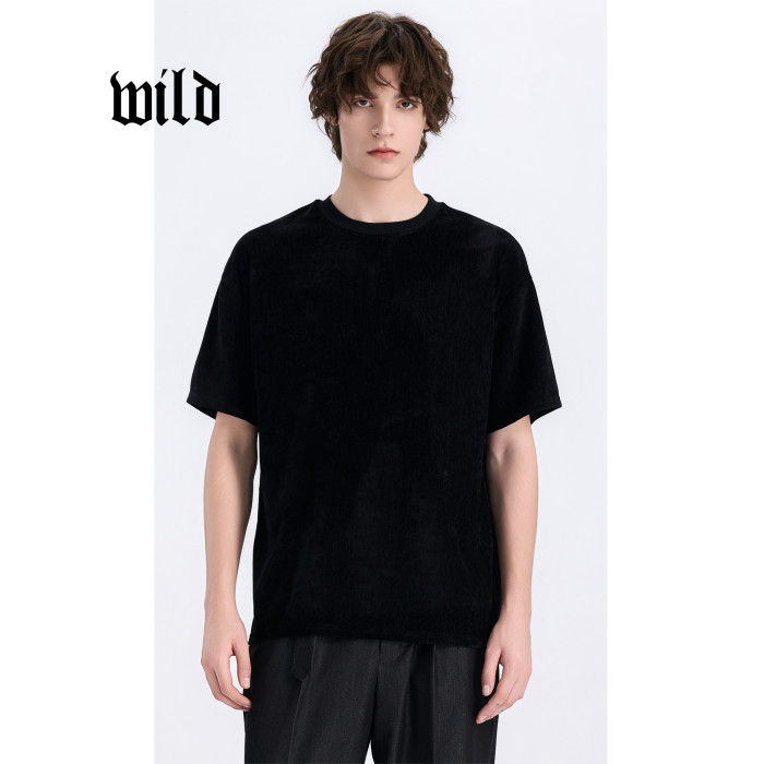 速乾男t恤短袖新款夏季透氣雪尼爾高級感通勤休閒圓領黑色打底衫