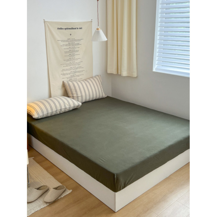 ins簡約純棉水洗棉純色條紋床單件雙人全棉親膚1.8m1.5米床笠床罩