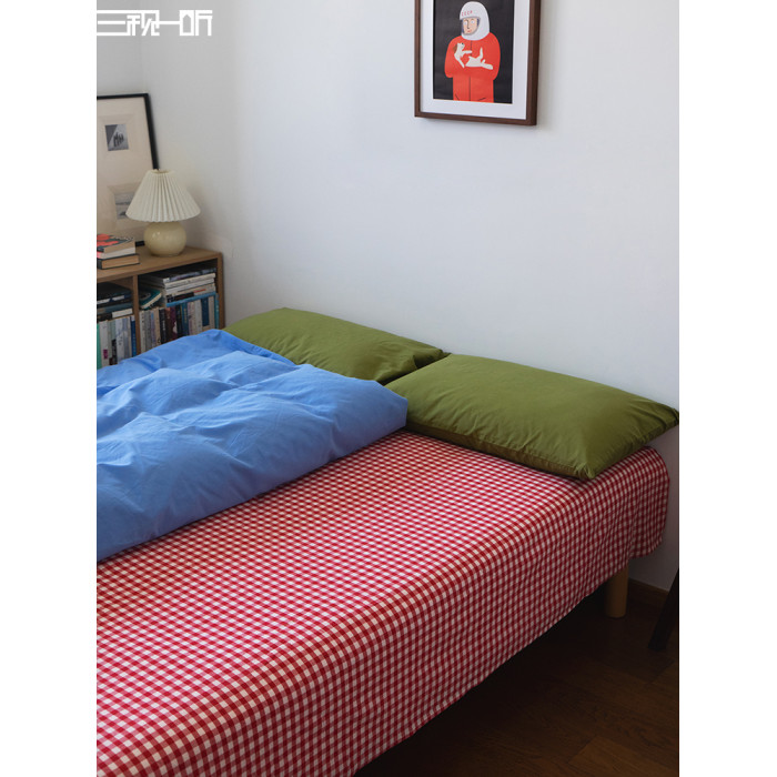 床單單件丨色織非印染丨全棉純棉床笠水洗棉床套單人床罩格子被單