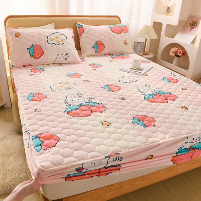 防水床笠-草莓萌兔